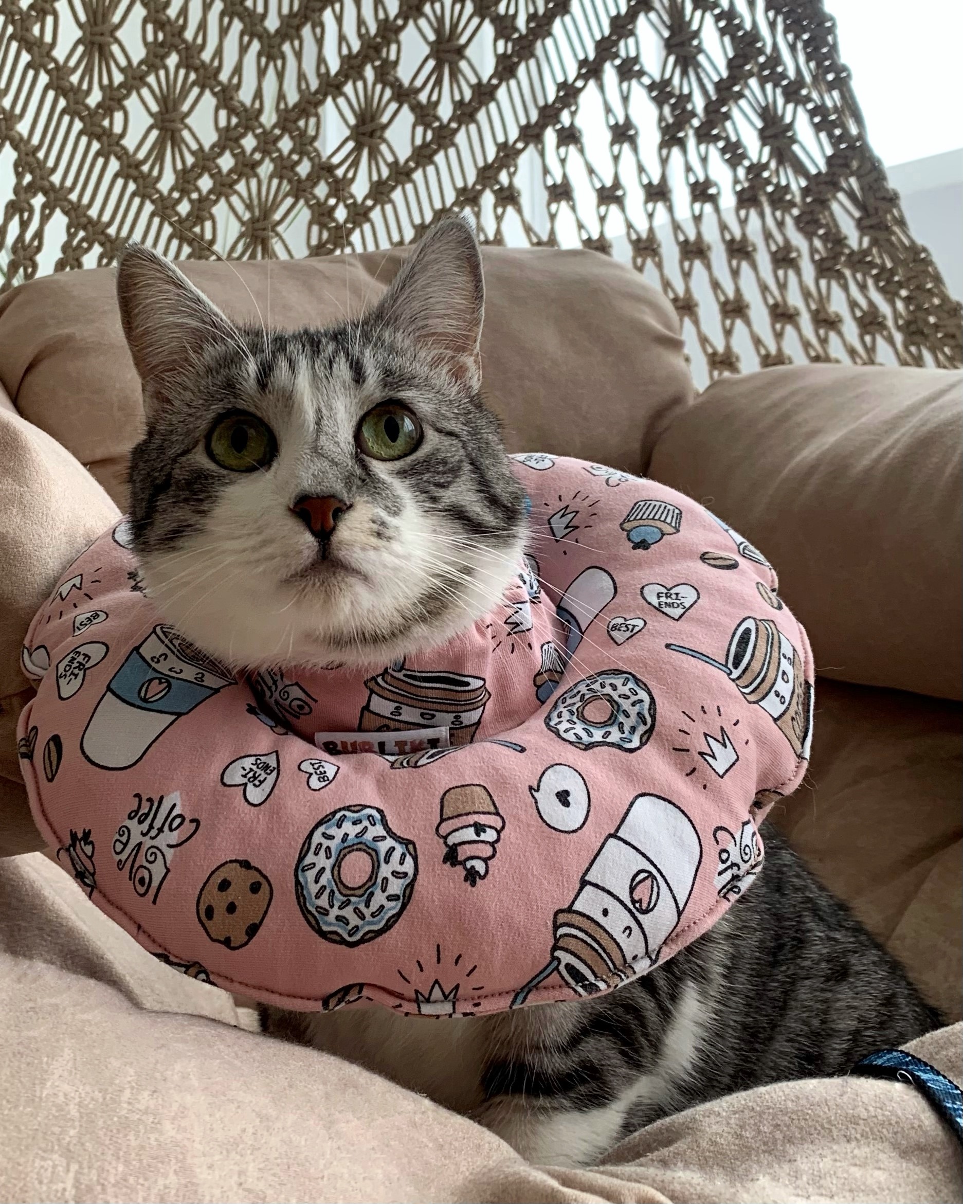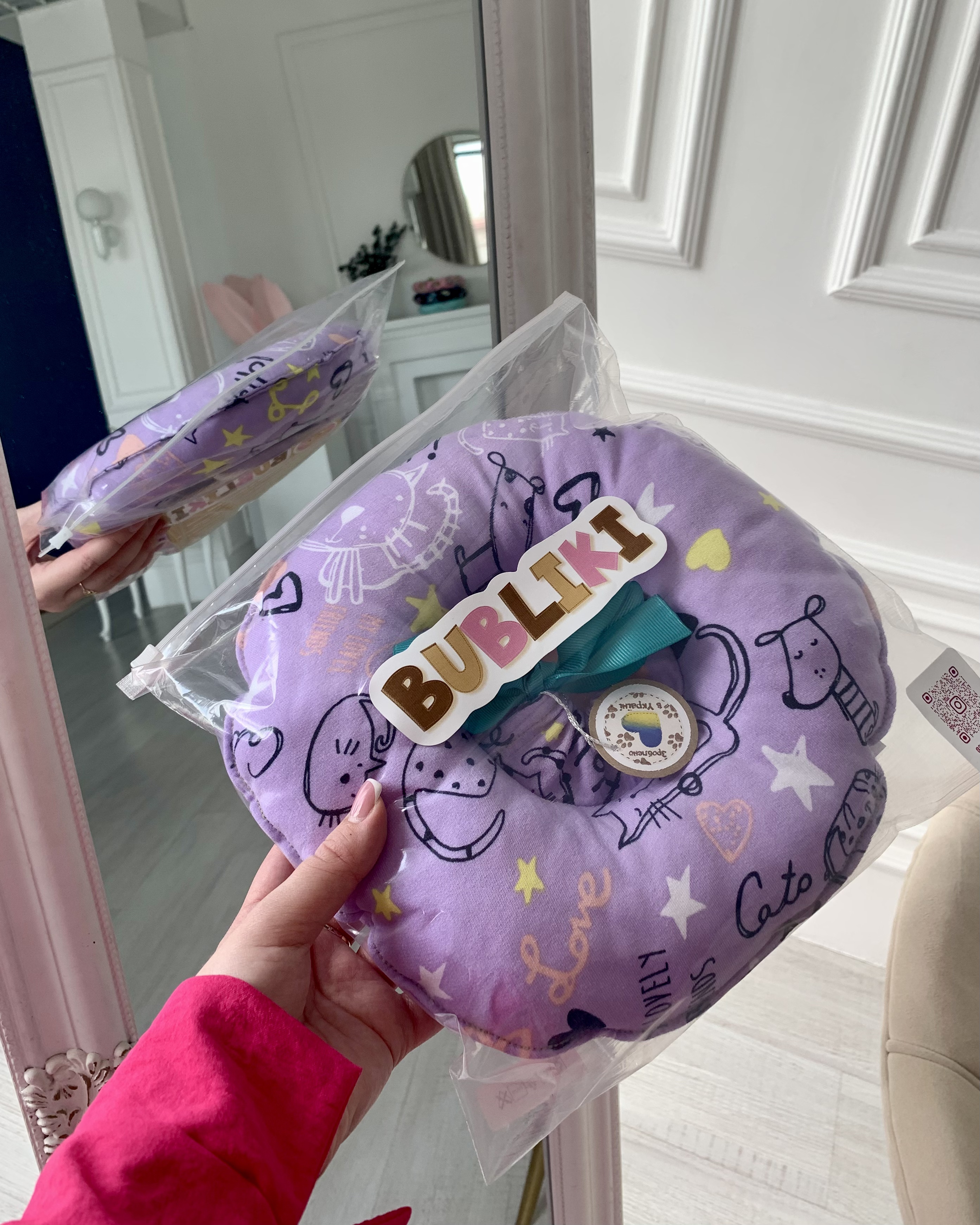 Miękki kołnierz weterynaryjny–poduszka Bubliki to innowacyjna alternatywa dla klasycznego kołnierza weterynaryjnego dla kotów i psów w okresie leczenia i rekonwalescencji. Szczególnie przydatny po zabiegach operacyjnych, podczas gojenia ran, aplikacji leków, zaostrzeń alergii oraz w stanach stresu.