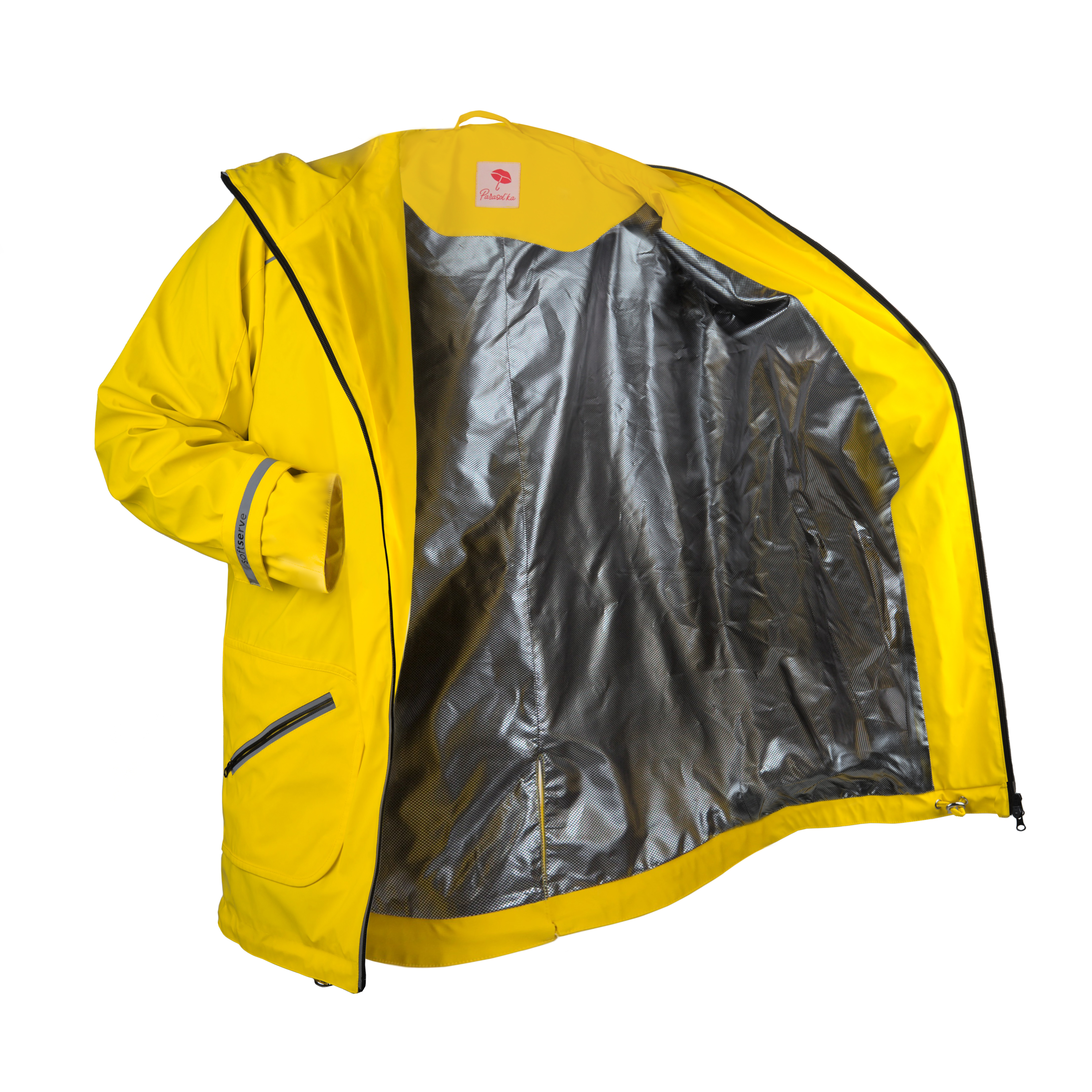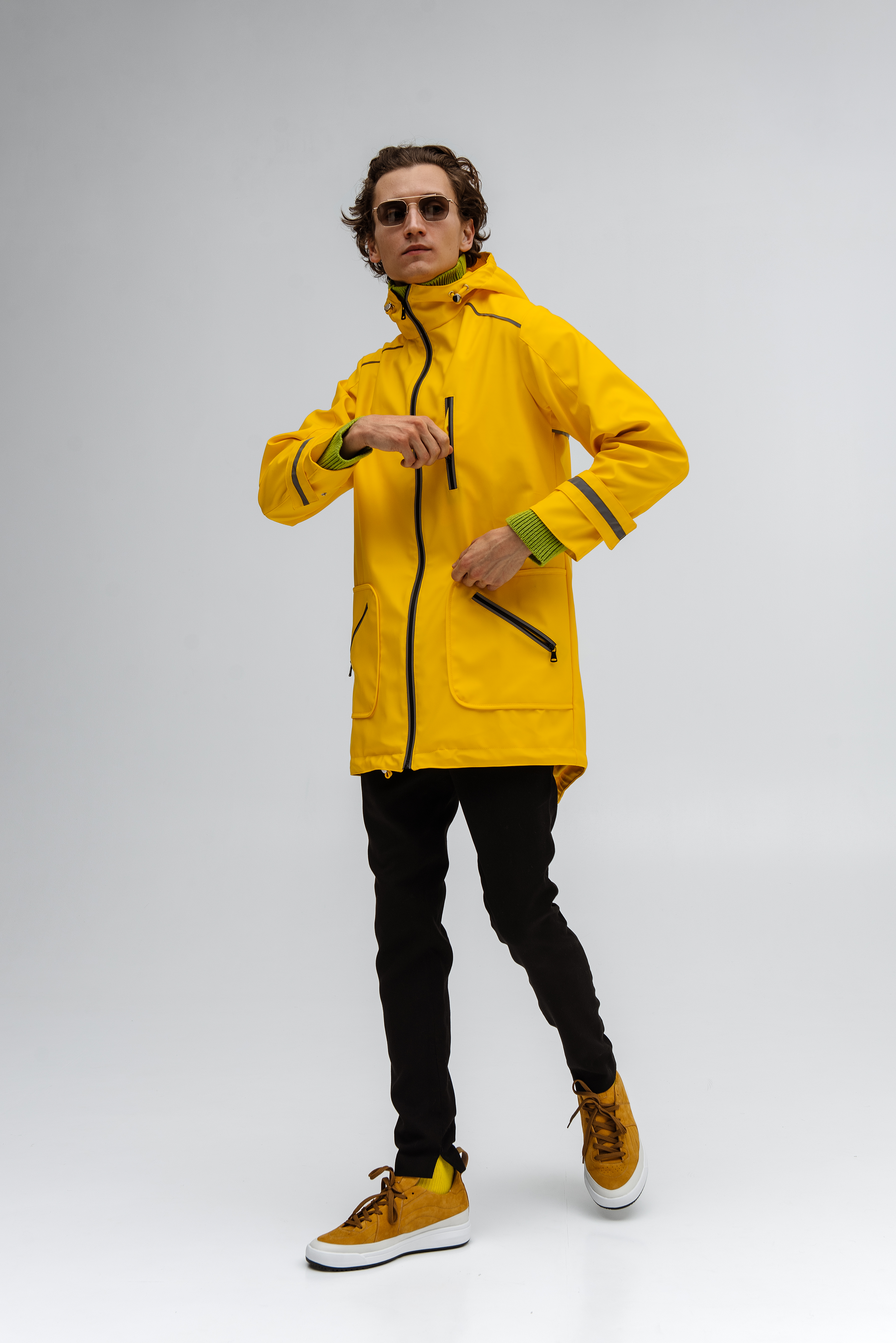 Sezon — wiosenny — przejściowy — jesienny. Styl — codzienny (casual). Rozmiar — S, M, L. Kolor — żółty. Materiał — wysokiej jakości lekka wodoodporna miękka tkanina. Podszewka z technologicznej tkaniny termicznej. Skład — 100% nylon z wentylacją na plecach (wykonany z wytrzymałej i oddychającej tkaniny pod tyłem pleców). Odbijające światło nadrukowane elementy na plecach i rękawach. Materiał wewnątrz — podszewka — technologiczna tkanina omni-heat (utrzymuje ciepło i nie zatrzymuje wilgoci).