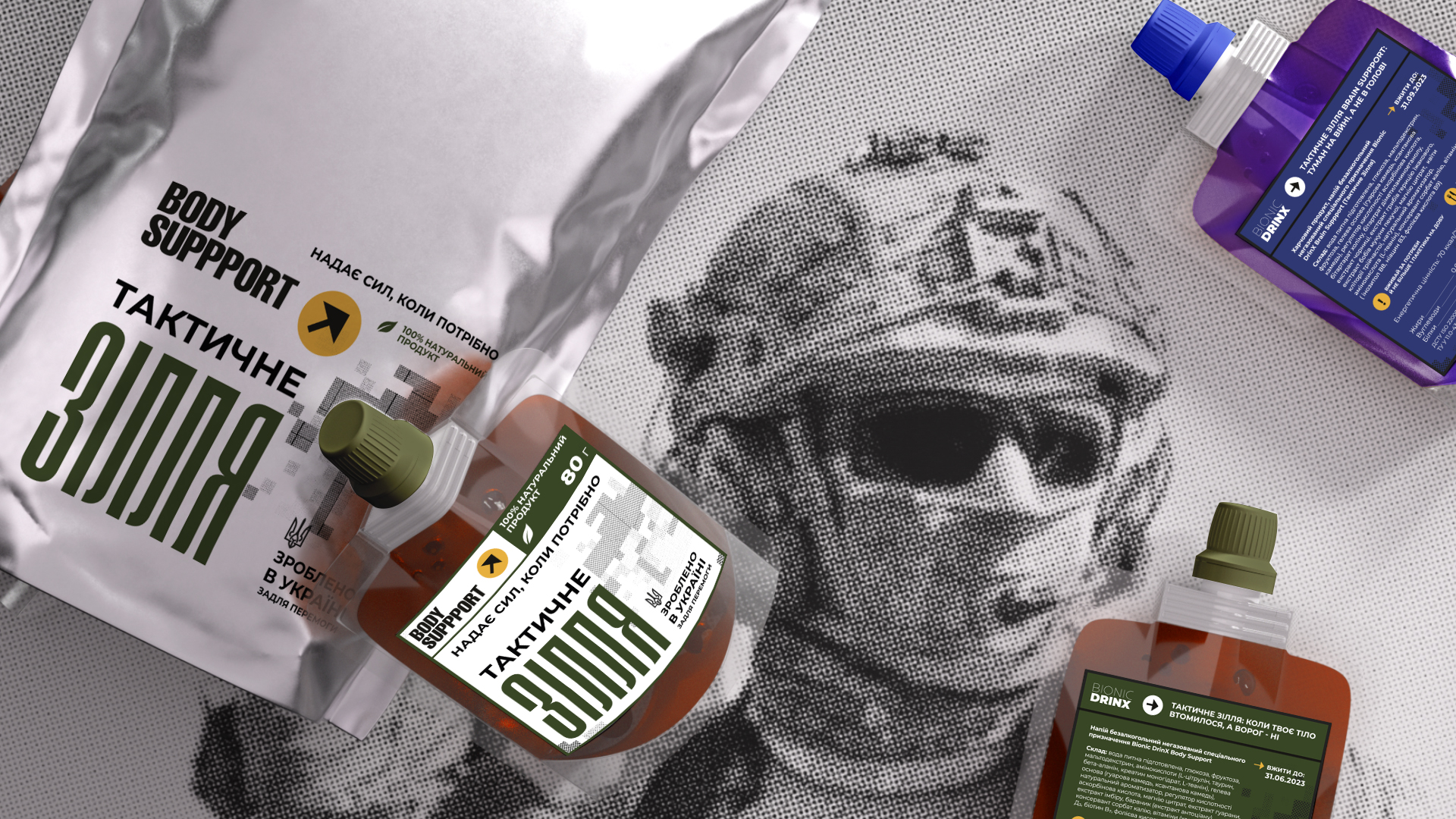 Wygodne, pijalne żele o różnym przeznaczeniu, stworzone w celu wspierania organizmu żołnierzy i cywilów w ekstremalnych warunkach wojny.