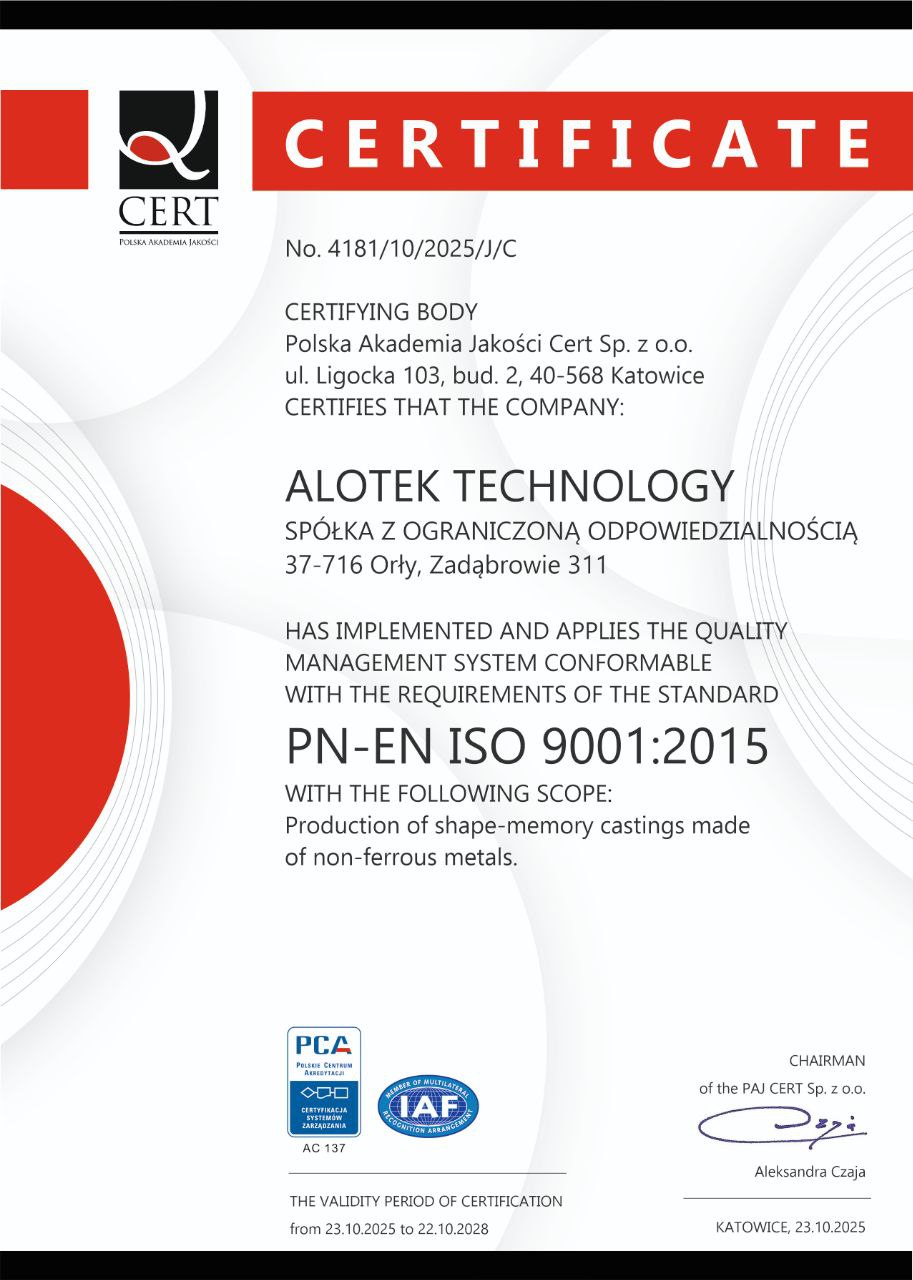 Замість звичайного плавлення металів ми створюємо фундамент для рішень нового покоління, де наш запатентований сплав Camital® на основі Cu-Al-Mn перетворює статичні деталі на активні саморегульовані механізми. Завдяки ефекту пам’яті форми ці інтелектуальні компоненти автономно реагують на зміни температури, відкриваючи нові горизонти безпеки та енергоефективності без використання зовнішніх джерел енергії чи складних датчиків.
