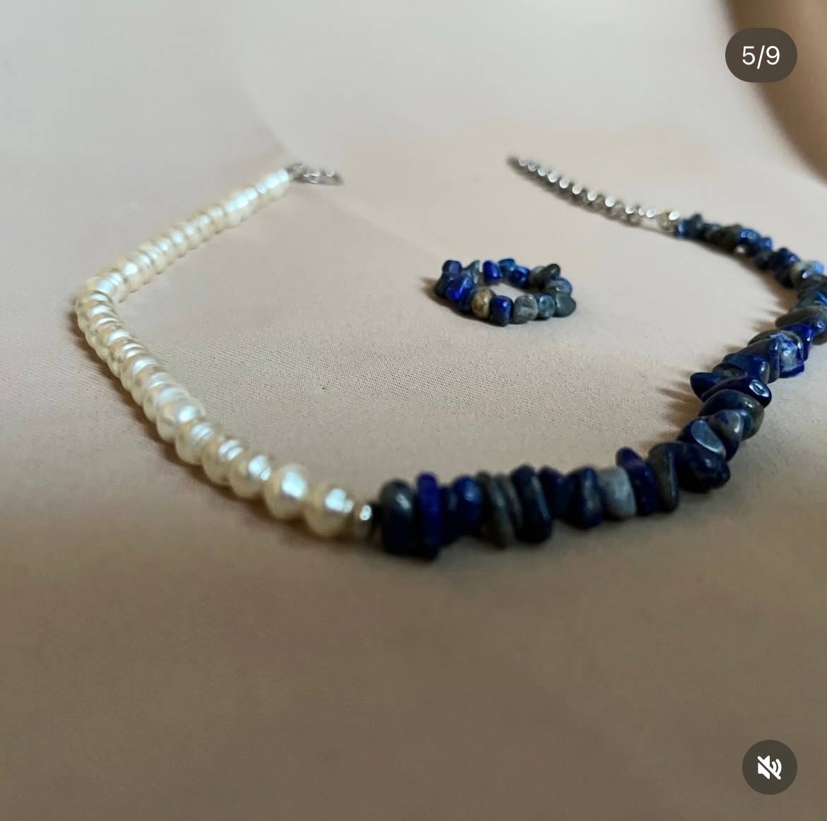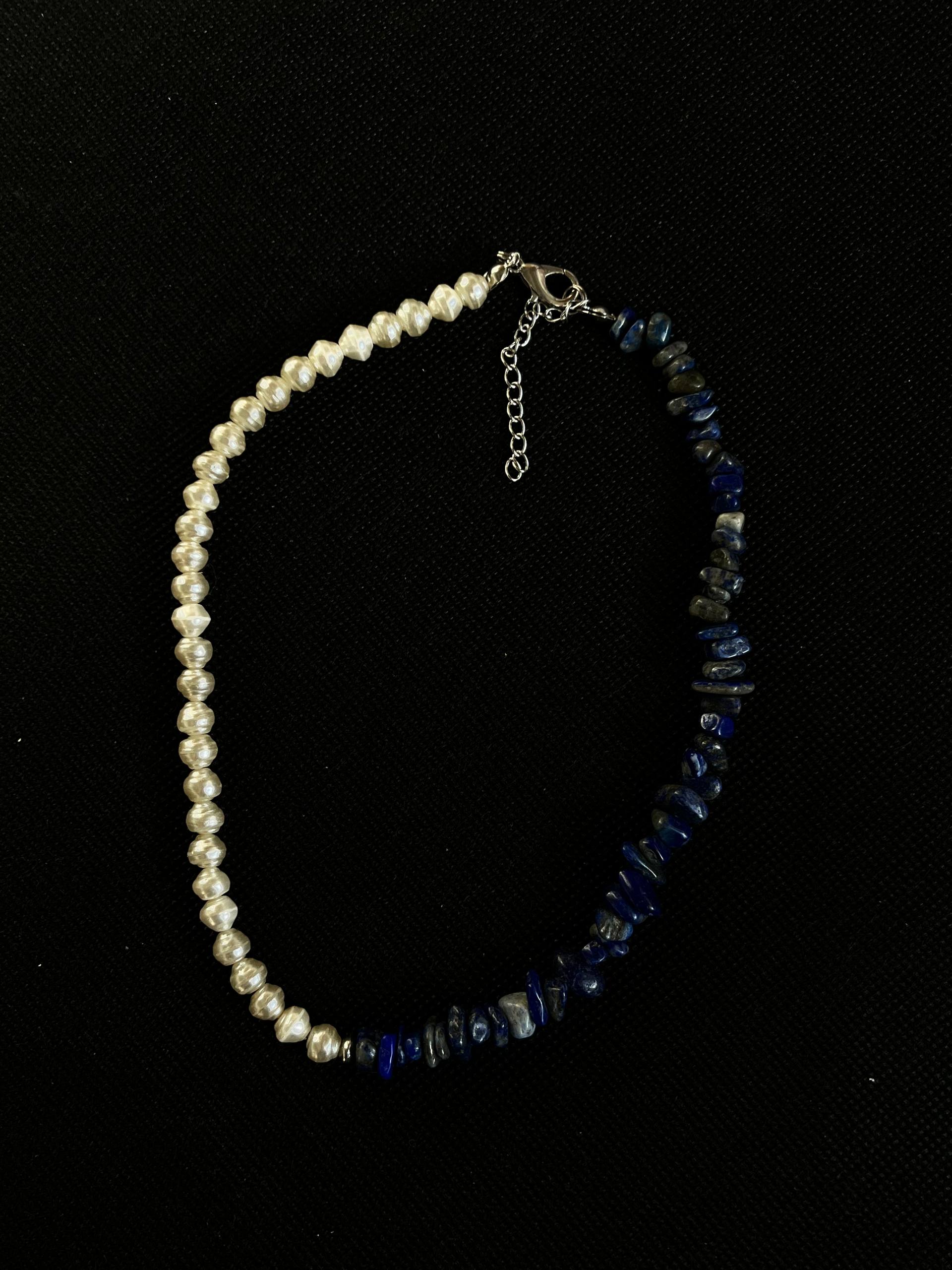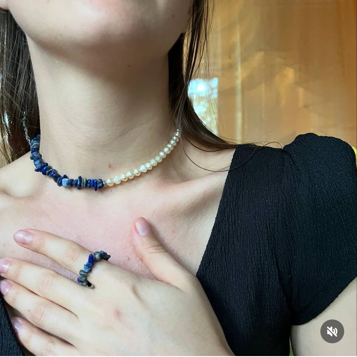 Половина прикраси виконана з натурального лазуриту, інша — з якісної імітації перлів. Про прикрасу: • асиметричний дизайн — половина лазурит / половина перли • подовжувач ланцюжка 5 см — зручно регулюється під шию • фурнітура з нержавійчої сталі • можна обрати колір фурнітури: під золото або під срібло • ручна робота.. Я створюю прикраси ручної роботи на замовлення. Якщо ви мрієте про прикрасу, якої немає в наявності — напишіть мені, і ми разом створимо вашу прикрасу.
